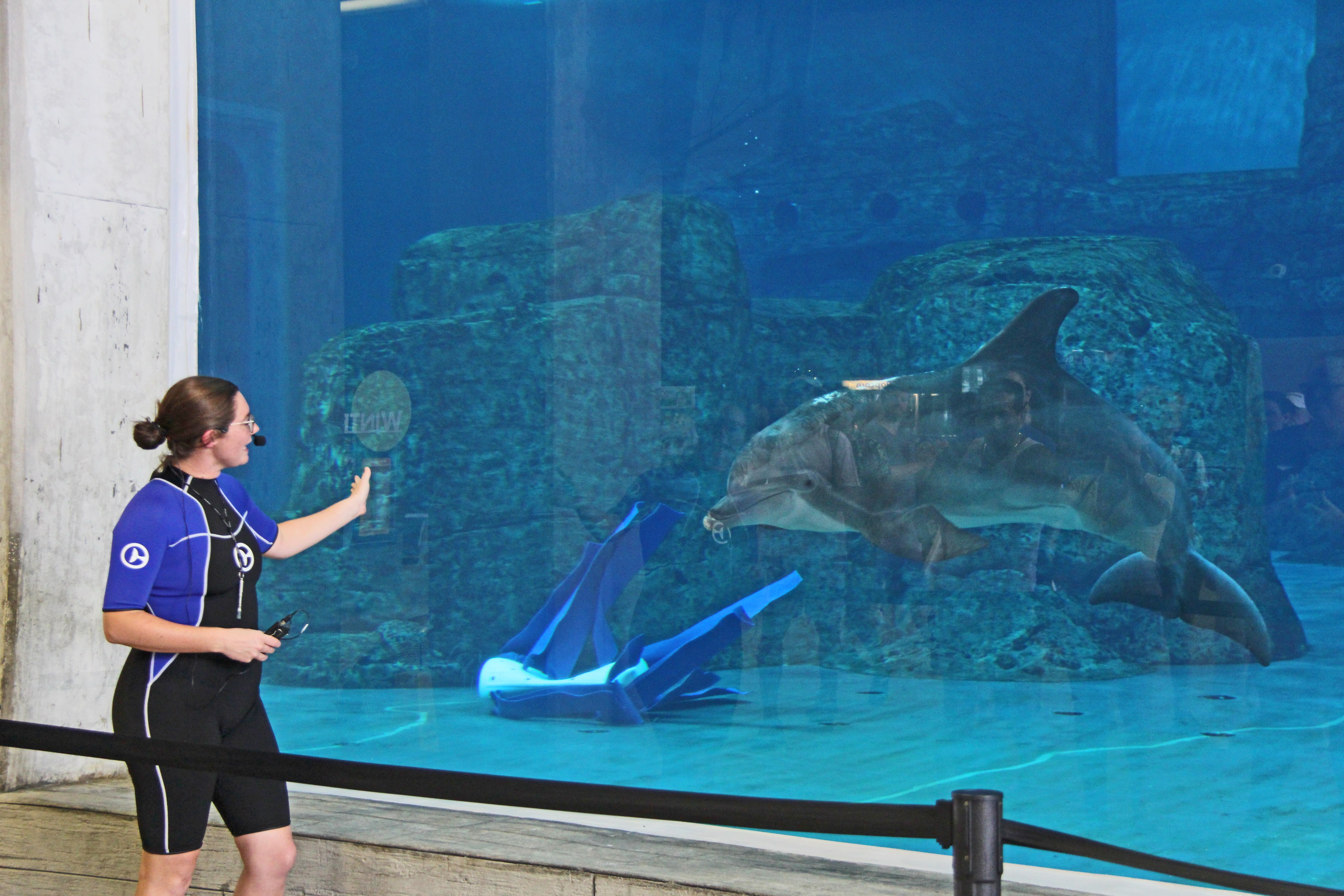 The Window of Wonder offers a stunning view into the dolphins’ watery world, including playful Nicholas who was eager to show off his exercises during our presentation. You can also travel around Winter’s Rescue Walk to get different views into the bottlenose dolphin tanks, or view from above on the Dolphin Terrace. Outside, you can catch a glimpse of Rudolph and Rosie, two rough-toothed dolphins found near Sanibel Island and Sarasota.
